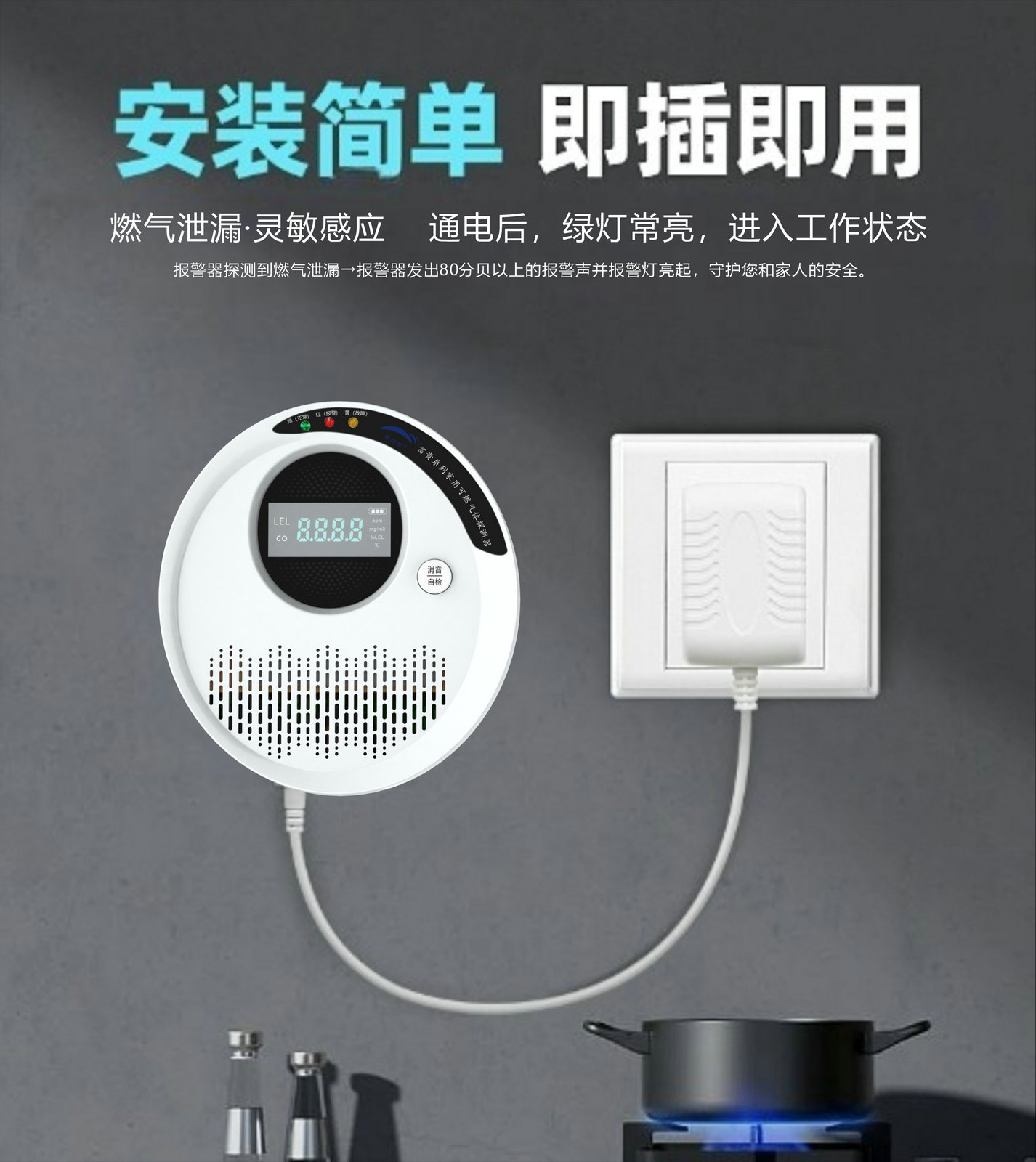 核心特點:AI功能、雙供電+備電、聲光/語音雙重報警、帶顯示屏、云平臺、商民用、可選檢測類別多